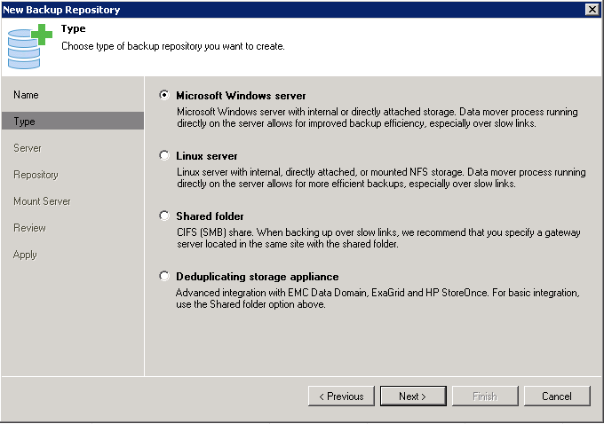 If you are stuck with a NAS, chances are you’ll need to use a CIFS share, which is not recommended ( note that chances are it isn’t actually CIFS, but SMB). CIFS tends to be a very ‘chatty’ protocol and doesn’t provide good performance. If you need an alternative, look at mounting the storage via iSCSI into the guest OS. This method may provide you better performance that CIFS, but can also introduce complexity. Things like targets, initiators, and authentication should all be well documented in case you need reconfigure access to the LUN. Another hack to avoid CIFS is to mount the share as NFS on a Linux box and install the Veeam agents on that Linux machine.