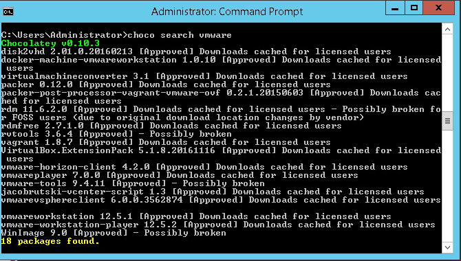 What if you don’t know the specific name of the package you are looking to install? Then you have a couple of choices. If you are a sucker for punishment, you can run ’ choco list’ - this will return all packages. Likely not too helpful. If on the other hand, you want to narrow your search, you can use ’ choco search xyz’ which will search packages’ descriptions for the term.
