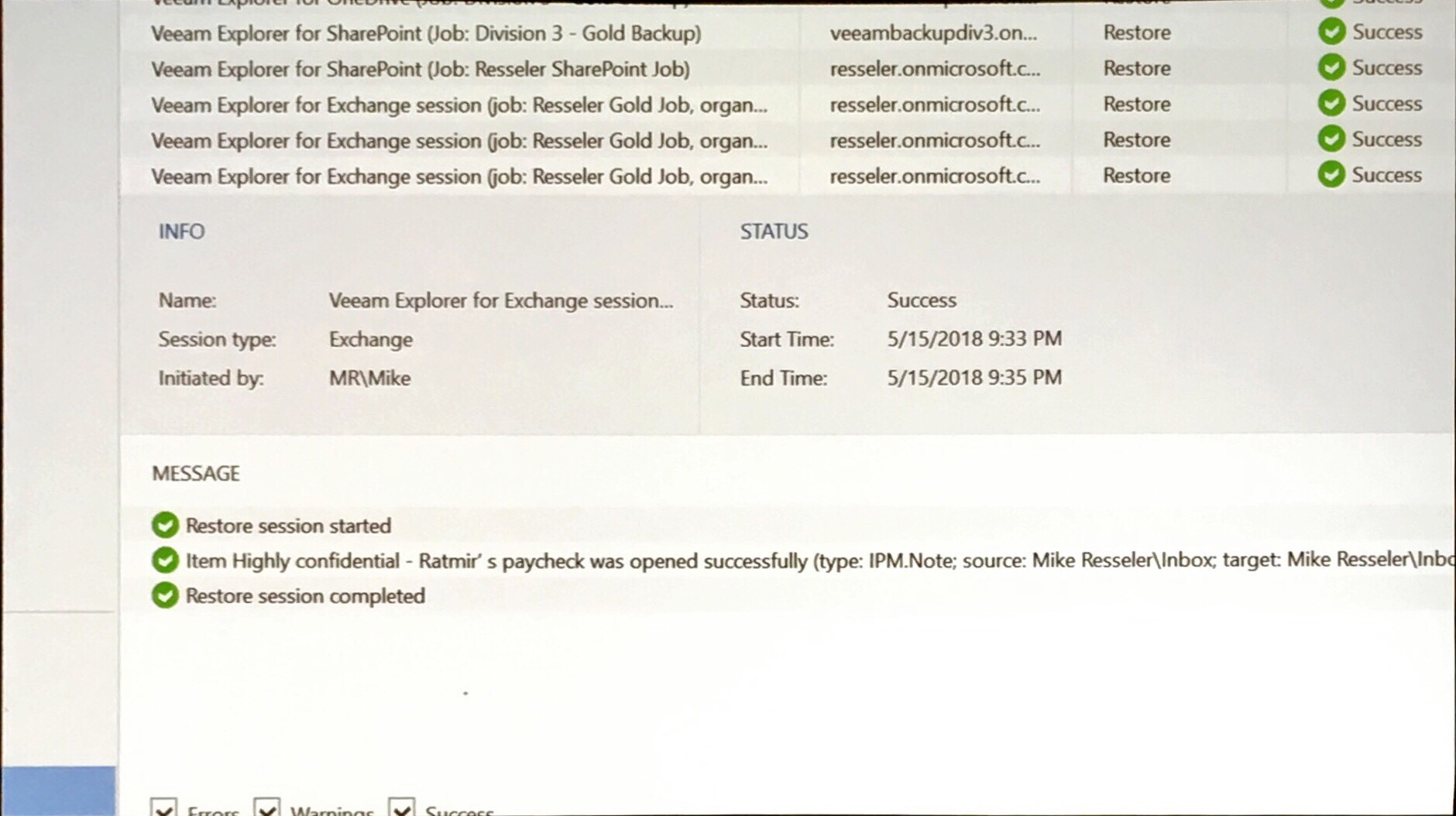 There were a couple of things that stood out to me aside from the above. The first is the addition of a log of all accessed activities. What I mean by that is if you have an employee who opens up the backup and views data (e.g. opens up an email), that will be logged. Even if the restore isn’t actually performed. This is huge from a compliance perspective. I have written about this blind spot before, so it is great to see something being done about it.