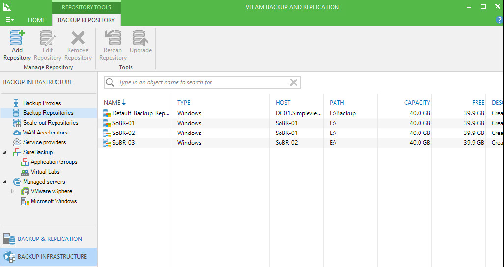 One of the newly introduced features in Veeam Backup & Replication 9 is Scale-out Backup Repositories (SoBR), and frankly I have been waiting to try this out. This is a fantastic solution that will be welcomed in a lot of environments, large and small. The concept behind it is that many of us have small ‘islands’ of storage - maybe a SAN, some NAS storage, and / or some direct-attach somewhere. Previously it would have been a real pain to leverage all of these as you would have to setup a separate repository for each ‘island’ and then maintain the jobs to make sure that a) there will be enough space and b) keep track of what is going where.