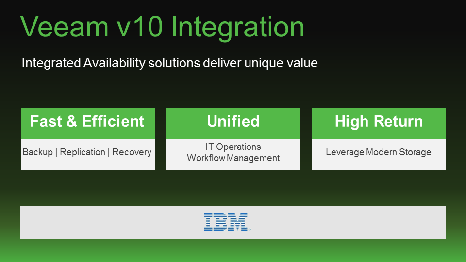 Considering that the rather large 9.5 patch hasn’t dropped yet, it seems almost crazy to be talking about version 10. That being said Veeam has announced that the next line of storage to get integrated into Veeam will be IBM (the SAN Volume Controller and Storwize lines). A tech preview of v10 is slated to be ready for VeeamOn 2017, which will be in May.